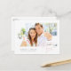 This minimalist save the date postcard features a large horizontal photo and casual rose gold script. On the front of the postcard, modern calligraphy reads "Save the Date" in the lower right corner. The pink gold lettering partially overlays a landscape-orientation photo. Add your names, wedding date, and wedding location to complete the customization on the front. The back of the postcard includes a template where you can add additional details like your wedding website.
