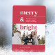 Adoptez le style moderne des fêtes avec ma conception de photo « Merry Bright » à typographie minimaliste de rose. Cette carte chic et épurée présente un fond Rose/Coral saisissant, une typographie grande et grasse, et un emplacement de choix pour votre photo de famille préférée. Le texte blanc croquant sur le schéma de couleurs chaudes en fait un choix contemporain et dans l'air du temps pour envoyer vos vœux chaleureux.