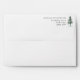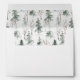 Minimalist Rustic Pine Tree Wedding envelope with a pattern of trees and twigs inside and return address on the flap.