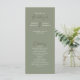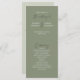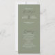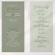 A timeless wedding program featuring hand-written titles on a light and darker sage green background. Elegant script and classic serif fonts combine to highlight the couple’s names and wedding details. Perfect for nature-inspired or minimalist weddings with a romantic touch.