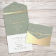 This elegant sage green all-in-one wedding invitation features a romantic gold rope heart, minimalist fonts, and a tear-off RSVP card. Perfect for couples seeking a simple, cohesive, and modern design. Personalize with your wedding website, meal options, and more. Matching suite available for a fully coordinated event.