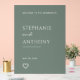 Minimalist sage green and white with heart modern wedding acrylic sign. The design features a trendy and modern design in sage green and white.