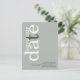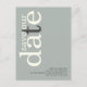 Minimalist Sage Ivory QR Code Text Save The Date. A modern typographical design in natural eathy tones to invite your family and friends to save your date, with Save Our Date in large typography rotated and to the left hand side at the top in ivory, with a grey letter "t" on a background of light sage green. Easily personalise the rest of the text. Add your QR code to your wedding website on the back by replacing the QR code on the sample. You can create QR codes for free online. Simply search “QR code creator” and lots of options come up to create for free.