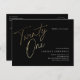 Modern minimalist 21st birthday party invitation features stylish faux gold foil number handwritten script Twenty One and your party details in classic serif font on black background colour, simple and elegant, great surprise adult milestone birthday invitation for men and women. The black background colour can be changed to any colour of your choice.