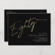 Modern minimalist 80th birthday party invitation features stylish faux gold foil number handwritten script Eighty and your party details in classic serif font on black background colour, simple and elegant, great surprise adult milestone birthday invitation for men and women. the black background colour can be changed to any colour of your choice.