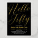 Minimalist Script Black Hello Fifty Birthday Gold Foil Invitation