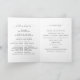 A timelessly elegant monochrome folded wedding program with "wedding of" in large modern calligraphy as a statement, paired with classic serif font.