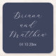 Minimalist Script Calligraphy Navy Blue Wedding Square Paper Coaster