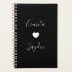 This wedding planner notebook features a heart symbol with the names of the bride and groom in a sleek black and white design. Whether you are creating checklists, timelines, budgets, guest lists, vendor information, ceremony, or reception details, this elegant and minimalist organizer will serve you well. It can be used as a bridal planner, a honeymoon planner, or a wedding planning notebook. It is appropriate for both modern and vintage weddings. Additionally, it is usable as a journal or diary. Customize with your names and dates to make it your own.