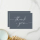 This thank you card features a minimalist script on a navy blue background to send your thanks in physical form. Perfect for weddings, showers, parties, and more!