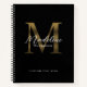 Minimalist Script Metallic Black Gold Monogram notebook