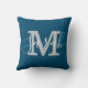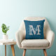Minimalist Script Monogram Name Blue & White Throw Pillow
