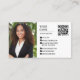 Make a memorable first impression with this clean black-and-white business card. Your name shines in elegant script on the front, complemented by a refined serif job title for instant credibility. The reverse side lets you add a personal photo or brand image alongside crisp contact details and a scannable QR code that directs clients straight to your online portfolio. Generous white space and subtle typography project modern professionalism, perfect for creatives and executives alike. Click Personalize to update fonts, photo, and info in seconds.