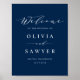 Minimalist Script Navy Blue Wedding Welcome Poster