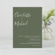 Featuring signature style names, this elegant olive green wedding invitation can be personalised with your information in chic lettering and your special photo on the reverse. Designed by Thisisnotme©