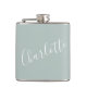 Minimalist Script Personalized Name Dusty Blue Hip Flask
