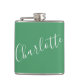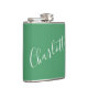 Minimalist Script Personalized Name Kelly Green Hip Flask