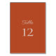 This tangerine table card is good enough to eat. The number is displayed in a clean serif font. The back is identical to the front for ease of use.