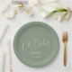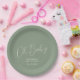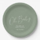 Minimalist Script Sage Green Oh Baby Shower date Paper Plate