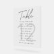 This chic and modern wedding seating chart table number acrylic sign features script lettering in black and names. Personalize it for your needs. You can find matching products at my store.
