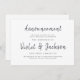 Modern minimalist wedding cancellation cards feature handwritten brushy script in charcoal black and white colour, simple and stylish.