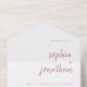 These elegant, minimalist all-in-one wedding invitations feature modern dusty rose script typography and clean, sans serif text on a white background for a simple and stylish design you will love. Detachable RSVP response card is attached.