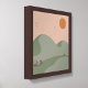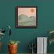 Abstract boho minimalist landscape poster that consists of mountains with a full moon in sea green colour.