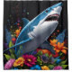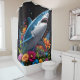A simple yet striking shark design featured on a shower curtain set. The shark is depicted in a clean, minimalist style, giving a modern and sleek look to the bathroom. The plain background enhances the sharpness of the shark's silhouette, making it an eye-catching centrepiece for a contemporary décor setting.