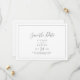 This minimalist silver horizontal save the date card is perfect for a simple wedding. The modern romantic design features classic silver grey and white typography paired with a rustic yet elegant calligraphy with vintage hand lettered style. Customizable in any colour. Keep the design simple and elegant, as is, or personalize it by adding your own graphics and artwork.