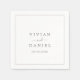 These minimalist silver wedding paper napkins are perfect for a simple wedding reception. The modern romantic design features classic silver grey and white typography paired with a rustic yet elegant calligraphy with vintage hand lettered style. Customizable in any colour. Keep the design simple and elegant, as is, or personalize it by adding your own graphics and artwork. Personalize the napkins with the names of the bride and groom, and the wedding date. These napkins can be used for the wedding reception, rehearsal dinner, engagement party and more!