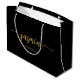 Minimalist Simple Black Gold Monogram Girly Script Large Gift Bag
