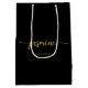 Minimalist Simple Black Gold Monogram Girly Script Medium Gift Bag