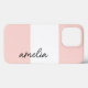 Create your own unique iPhone case! This case features a bold wide stripe in blush pink and name in a pretty script font in black.