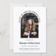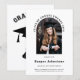 Announce your academic achievement with our elegant minimalist photo graduation announcement. This design features sleek black text on a pristine white background, with an arched photo area to showcase your favourite graduation photo. Above the photo, arched text reads "Class of Twenty Twenty-Five," adding a sophisticated touch. The back of the announcement includes arched collegiate text saying "Graduate," along with a charming image of a graduation cap and diploma. Personalize the cap with the graduate's initials for a unique and memorable detail. Perfect for announcing your special day in style!