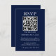 Modern Minimalist Simple Wedding RSVP Card with your QR Code. Instant Download. Downloadable version or printed version available. Navy Blue