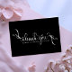 Send heartfelt gratitude in style with this minimalist yet artistic thank-you card, blending bohemian flair and timeless sophistication. The front features "Thank You" in intricate boho calligraphy script, elegantly contrasted against a sleek black background. Fully customizable with the couple’s names and wedding date, this card’s reverse side offers space for a personalized message—perfect for sharing post-wedding warmth with guests.