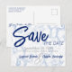 Send off the "Save The Date" announcement for your wedding with a smokey blue design. Personalize the front and back text in the template fields, remove text or edit using the design tool to select a typeface style, size, and colour you prefer.