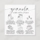 Minimalist Granola Care Cards with elegant script font and care icons. This modern black and white sourdough granola care guide includes the most important care instructions with icons for each step, so your customers know how to best store fresh granola or muesli. You can edit all instructions, add your logo and contact details to this card to make your personalized care note cards for micro bakery.