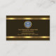 Overleaf, in a similar design theme, the gold logo is at the top followed by your prestigious name, contact details and a slogan caption. All lettering are in faux gold.