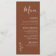 Simple, modern and minimalist in style, terracotta colored wedding menu with removable drawn foliage motif.