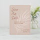 Announce your big day in style with this terracotta boho save the date card. Featuring a warm earthy background, modern script typography, and a subtle palm leaf illustration, this design blends minimalist elegance with organic bohemian charm. Customize with your names, wedding date, and location for a personalized keepsake that sets the tone for your celebration. Perfect for rustic chic, modern, or botanical weddings.