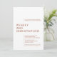 Elegantly simple minimalist wedding invitation featuring clean typography and a bold modern composition. Design features wedding details aligned against shifted margins, highlighting the couple's names as an isolated text block. Design is stripped of extraneous ornamentation thereby prioritizing functionality, balance and harmony. Perfect for couples that embrace utmost simplicity, elegance and style. Back of card is left blank, with a solid colour background. Design is available in a curated selection of modern colours and is easily personalized. Please share a comment and reach out for assistance in personalization or for any customizations. We look forward to hearing from and working with you!