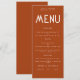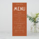 Minimalist Text Terracotta Wedding Menu card. Available digitally and printed. Easily personalize the text to your own details which includes alternatives for your vegan or vegetarian options. You can change if you wish to any colours of your choice to match your wedding theme.