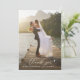 wedding thank you photo card design with modern stylish white lettering. Custom photo thank you design.