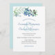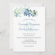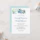 This minimalist botanical wedding invitation features sketch art branches, leaves, and blue and brown berries along the top. The card back matches a hue from the berries. Personalize the design with your wedding details in the template fields.