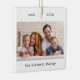 These simple and minimalist Christmas holiday ornaments feature your favourite personal photo on the front along with your name and the year in black typewriter look text. The back features another of your photos, lightened with an overlay so that you can add additional text or names right over it.