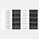 Create your own food and drink labels! 2 Simple and modern sheets of 48 labels waterproof and dishwasher safe for labelling items for daycare, flatmates, school, work, sports, office. A bold urban template design in cool modern black and white, gender neutral colours, featuring a grunge distressed typewriter serif font, fully customizable in any colour and any font. Make your own name waterproof food and storage labels, keep your personal items safe from getting lost.