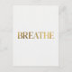 Minimalist typography with gold word breathe postcard