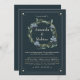 Celebrate your love story with this elegant minimalist vintage wedding invitation. Featuring a dark navy background, delicate floral illustrations, and a geometric gold frame, this timeless design combines classic sophistication with modern simplicity.