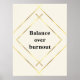 Bring a sense of mindful calm to your workspace with this wall print featuring the quote “Balance Over Burnout” in refined serif typography, framed by delicate gradient gold lines on a soft ivory background — this piece embodies quiet luxury and intentional living. Perfect for home offices, creative studios, or serene work corners, it serves as a daily reminder to lead with balance, not exhaustion. Style it alone for minimal impact or pair it with the matching notebook and mouse pad for a cohesive desk aesthetic.